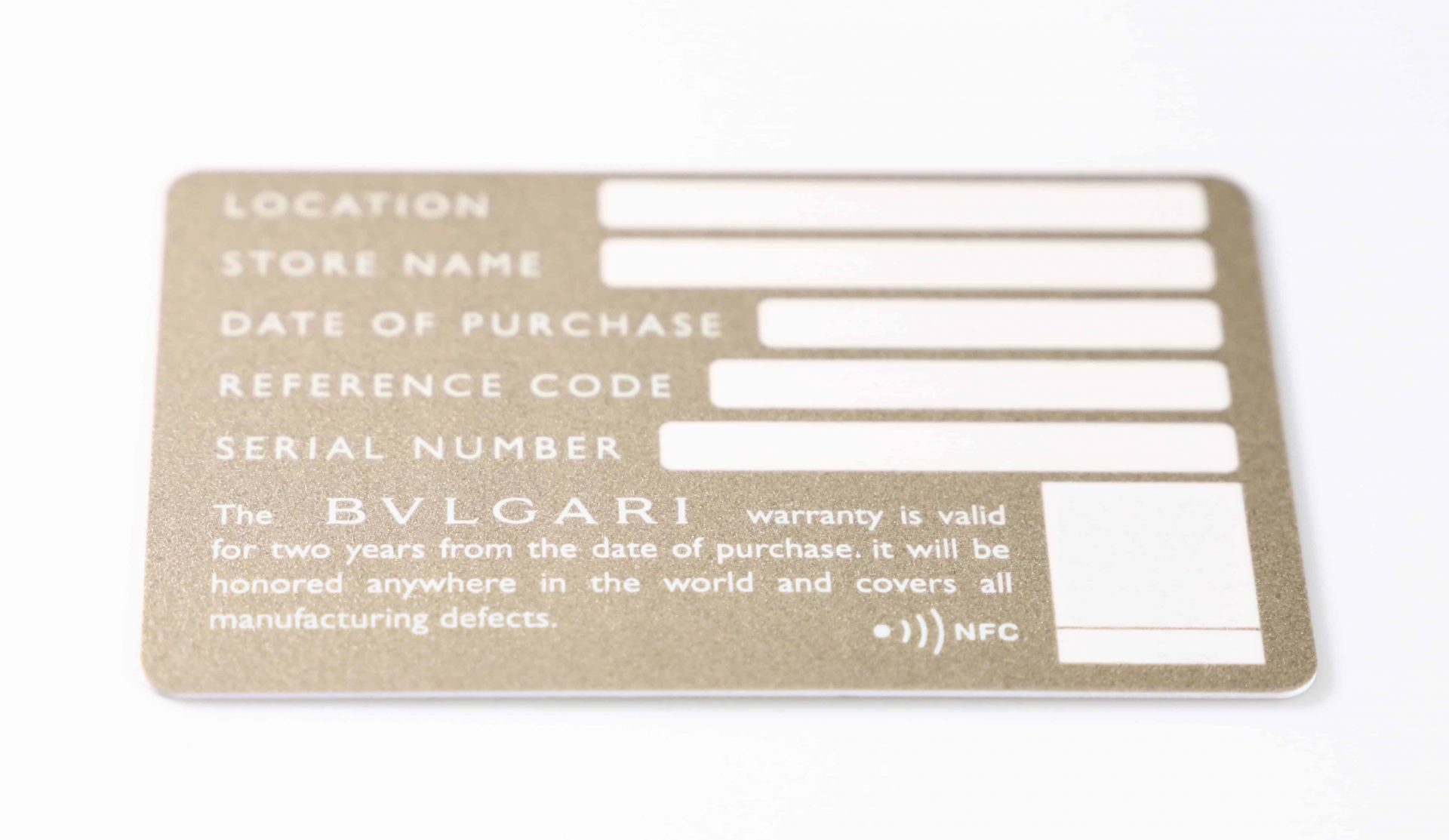 Title: Bvlgari Roma Watch International Warranty Card