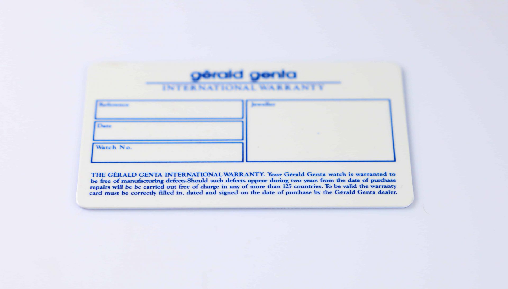 Title: Gérald Genta Watch International Warranty Card